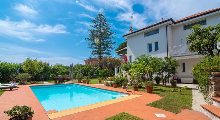 Luxury hotel in Sanremo with a seasonal outdoor pool, restaurant, and fitness center, just steps from the beach and promenade.