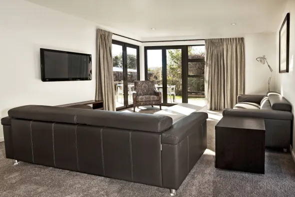 Luxury resort in Wānaka with outdoor pool, hot tub, tennis courts, and fully equipped kitchens in individually decorated rooms.