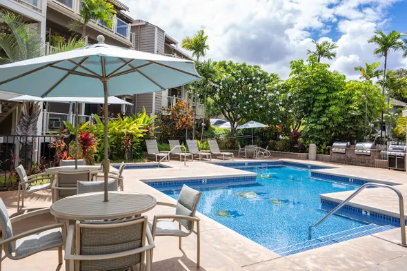 Luxury resort with outdoor pool, waterslide, full-service spa, and stunning ocean views in Wailea, Hawaii.