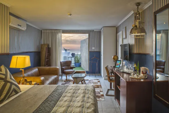 Beach hotel in Tel Aviv with air-conditioned rooms, fireplaces, and concierge services, just a short walk from Jerusalem Beach.