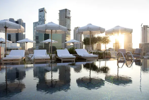 Luxury hotel in the heart of Tel Aviv with a full-service spa, seasonal outdoor pool, and Mediterranean dining options.