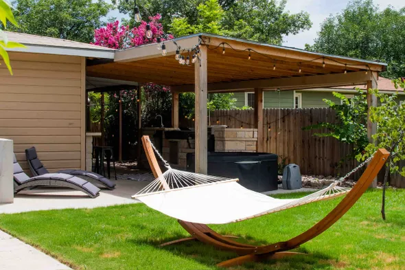Charming vacation home with a large fenced yard, gazebo, and a variety of games for family fun in Abilene.