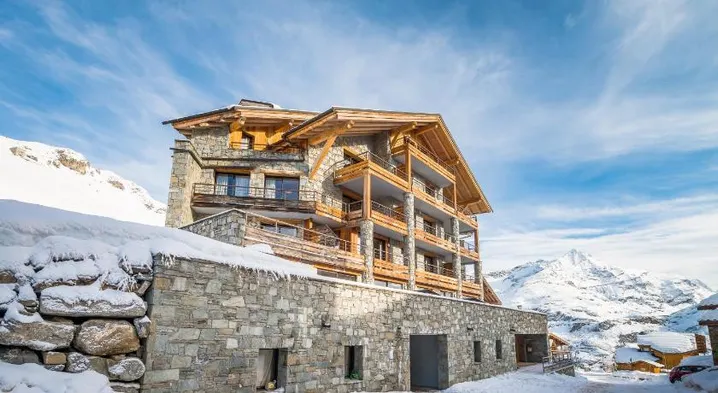 Ski-in/ski-out residence with indoor pool, spa services, and hot tub in Tignes, near Val-d'Isere Ski Resort.