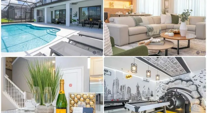 Spacious 3-bedroom townhouse with swimming pool, free parking, and access to Disney fireworks in Kissimmee.