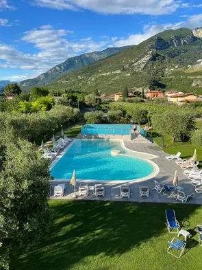 Relax in a hotel featuring two outdoor swimming pools, a sauna, and a health club in Nago-Torbole.