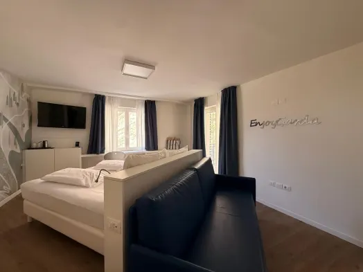 Relax in a hotel with a seasonal outdoor pool, hot tub, sauna, and stunning views in Nago-Torbole, Italy.