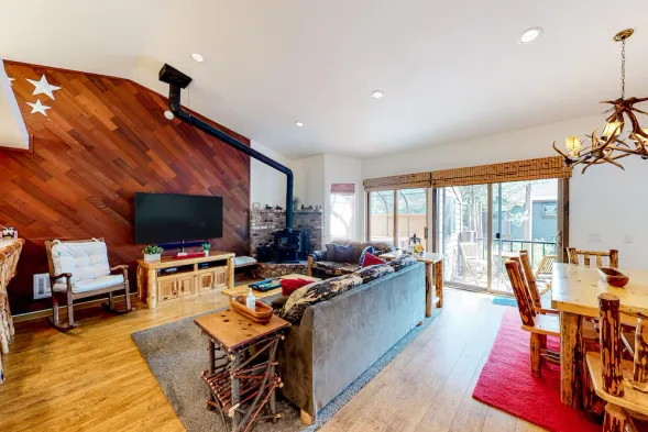 Two-story, dog-friendly mountain condo w/shared hot tub, pool, gas stove