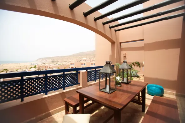 Luxury resort with spa, private beach, outdoor pool, and four restaurants in Imi Ouaddar, Morocco.