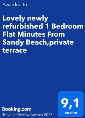 Lovely newly refurbished 1 Bedroom Flat Minutes From Sandy Beach,private terrace