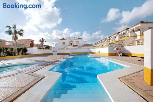 Mediterranean apartment with outdoor pool, poolside bar, and private patio in Caleta de Fuste.