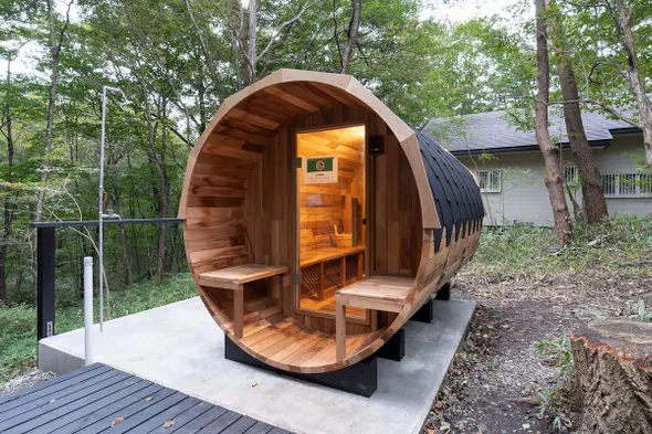 贅沢サウナで森林浴を満喫するモダンハウス Nasu Sauna Stay
