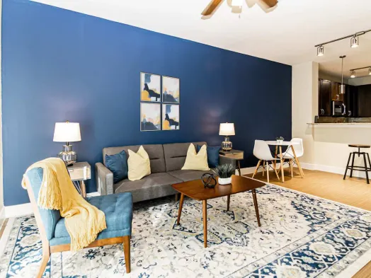 Luxury apartment with infinity-edge pool, lush gardens, and free parking near Galleria Dallas and popular attractions.