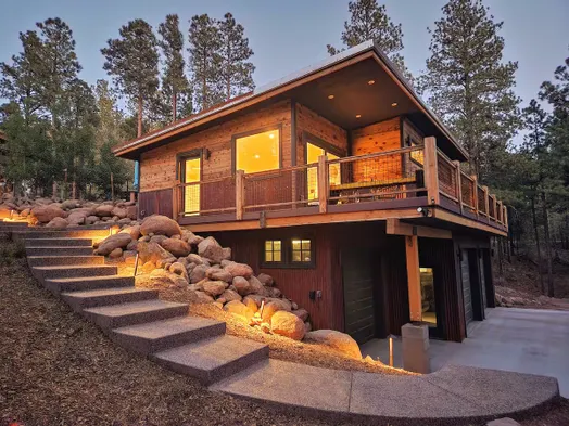 Luxury cabin in Flagstaff with a hot tub, stunning mountain views, and a fully-equipped kitchen for a perfect getaway.