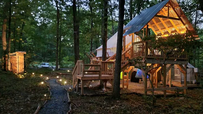 Great Glamping Getaway in North Carolina in this Stunning Elevated Bell Tent in Denton