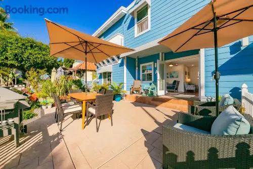 Remodeled studio steps from the beach with in-unit laundry, air conditioning, and a shared Jacuzzi.