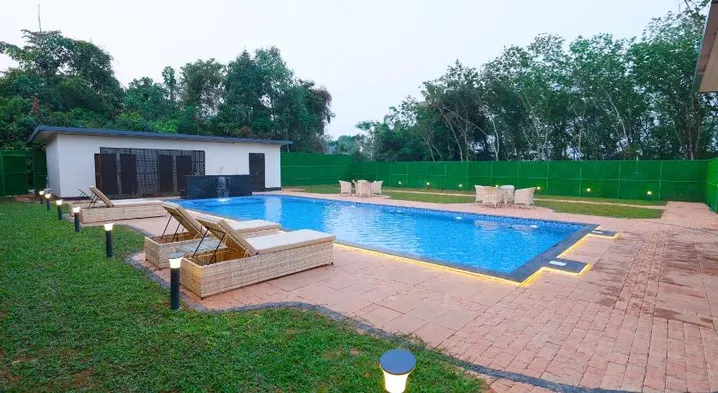 Luxury villa with outdoor pool, bicycle rental, and close proximity to Vembanad Lake in Kochi.
