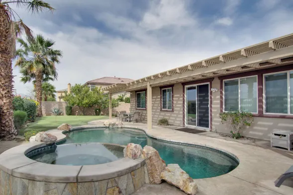 IndioStay 5min to Coachella & Stagecoach Fest -Private Pool, Water Slide, Waterfall, Jacuzzi, Fire Pit