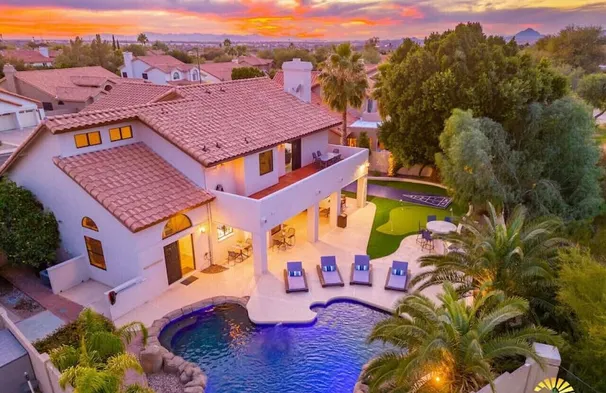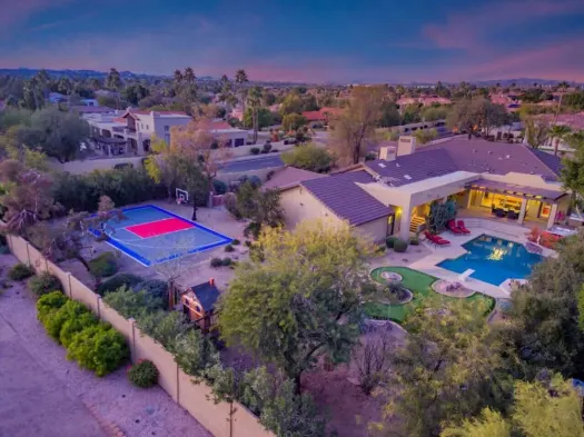 Experience luxury in Central Scottsdale with heated pool, pickleball, & slide!