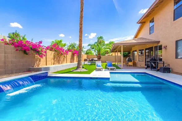 Experience luxury in Central Scottsdale with heated pool, pickleball, & slide!