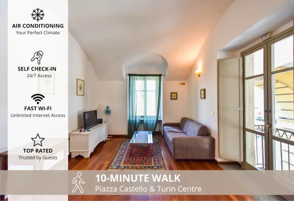 Luxury hotel in the heart of Turin with Michelin-star dining, fitness center, and elegant rooms featuring jetted bathtubs.
