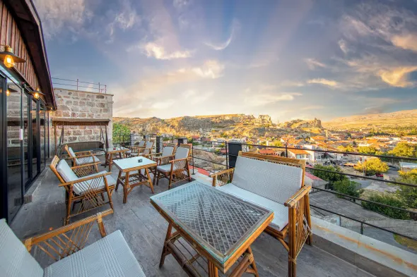 Experience stunning views from the rooftop terrace and enjoy complimentary breakfast at this charming hotel in Ürgüp.