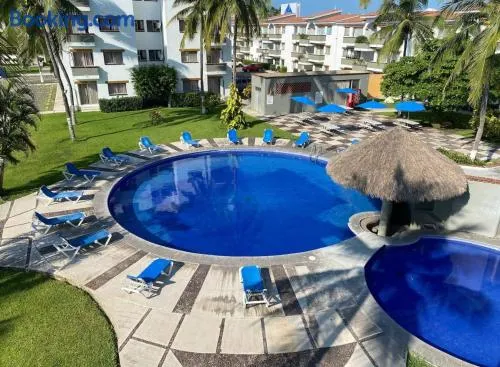 Beachfront hotel with 3 outdoor swimming pools, fitness center, and 2 restaurants in Manzanillo.