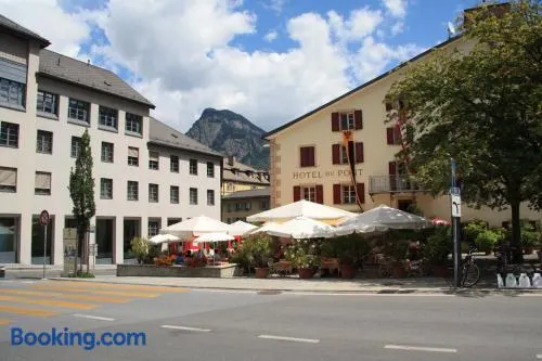 Experience comfort in the heart of Brig with a terrace, free Wi-Fi, and a superb restaurant serving French cuisine.