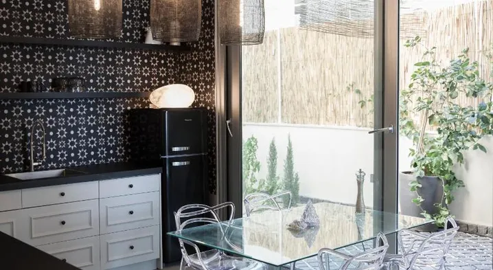 Luxurious apartment in Haifa with free parking, room service, and a cozy outdoor fireplace for a comfortable stay.