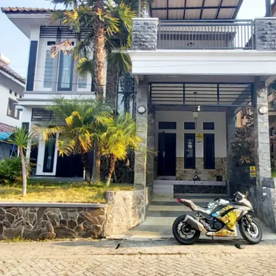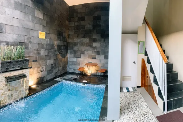 Luxury resort with outdoor pool, waterslide, hot tub, and on-site dining in Batu, Indonesia.