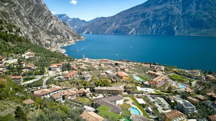 Luxury hotel with spa, indoor and outdoor pools, and Italian dining in Limone sul Garda.
