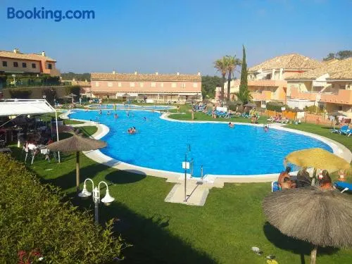 Luxury beach hotel with 5 swimming pools, spa, fitness center, and kids club in the heart of Islantilla, Spain.