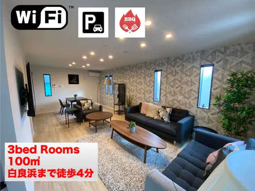 BBQ available Enalee Beach Villa, 3 bedrooms, 100 sqm, newly built in 2021, 5-minute walk to Shirahama Beach