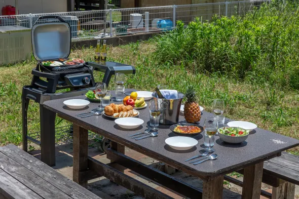 Enjoy the BBQ in the hot spring with a large group!It is possible to rent a villa for 7 people!2台無料駐車場付き