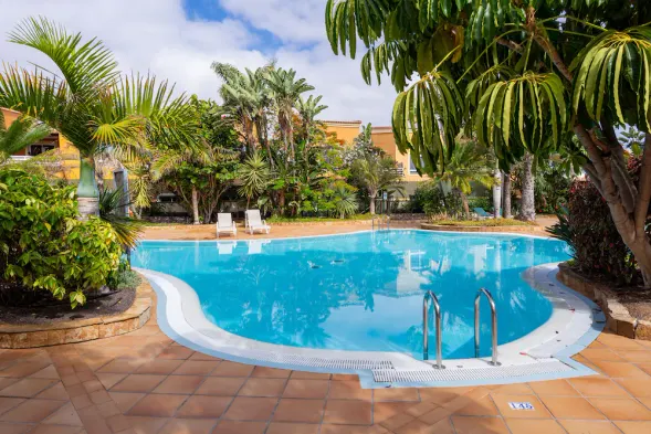 Stunning vacation home with private outdoor pool, garden, and sea views, just a short walk from the beach in Corralejo.