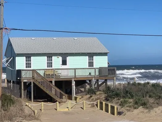 Beachfront hotel with outdoor and indoor pools, fitness center, and on-site dining in Kitty Hawk.
