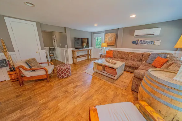 Cozy apartment near the beach with a hot tub, perfect for a couples getaway in a peaceful neighborhood.