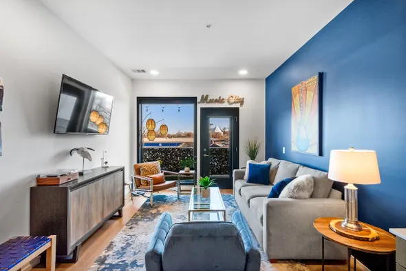 Stylish condo with concierge service, pool access, and a full kitchen, just minutes from downtown Nashville.