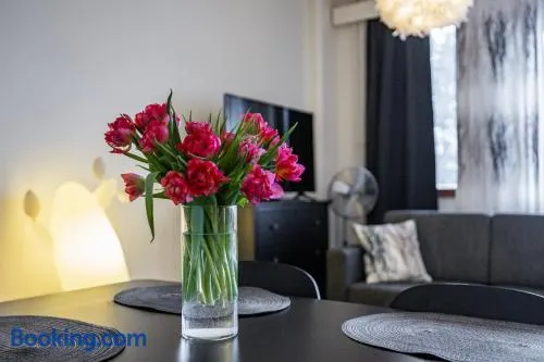 Modern apartment in Rovaniemi with kitchen, bicycle rental, and express check-in, just a short walk from Lordi's Square.