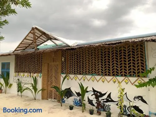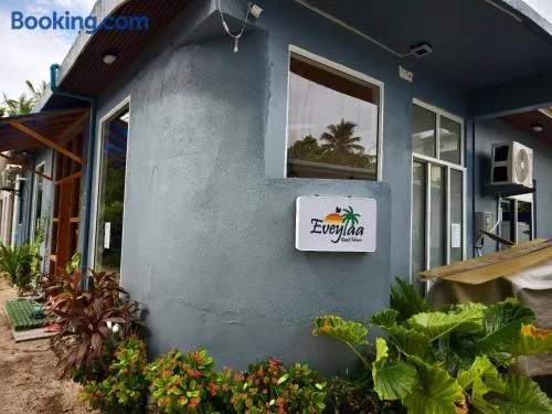 Beach guesthouse with private beach access, air-conditioned rooms, and complimentary breakfast in Felidhoo.