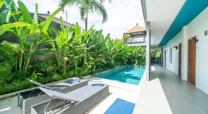 Hotel with swimming pool, restaurant, and garden, located near Echo Beach in Canggu.