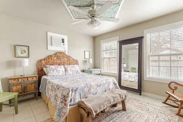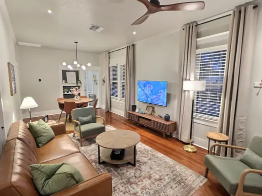 Tastefully remodeled 1800s home with vintage charm, fully-stocked kitchen, and fast free 5G wifi in Seguin's city center.