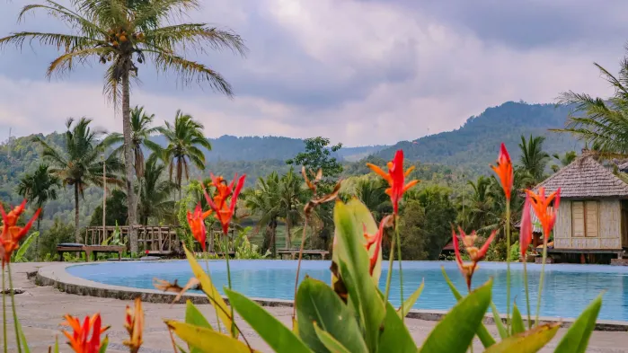Luxury villa in Munduk with an outdoor pool, spa services, and stunning lake views, perfect for relaxation and outdoor activities.