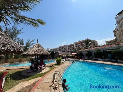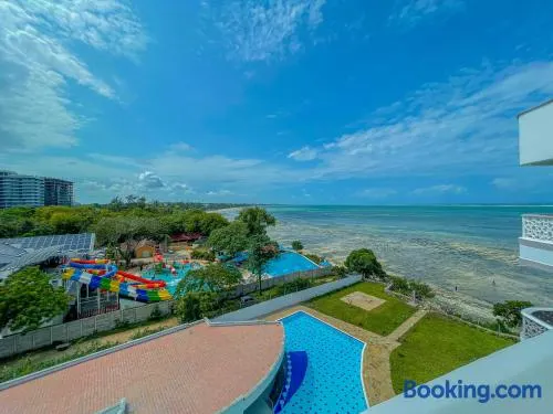 Apartment with swimming pool, private beach access, and on-site restaurant in Mombasa.