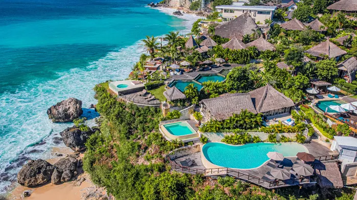 Relax at this adults-only spa hotel featuring 3 outdoor swimming pools and a full-service wellness center in Uluwatu.