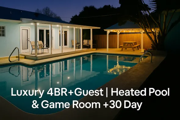 Luxury 4BR+Guest | Heated Pool & Game Room +30 Day