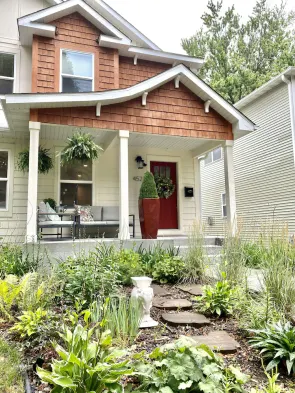 Creek half a block away! Family-sized, specious home with back patio and garden