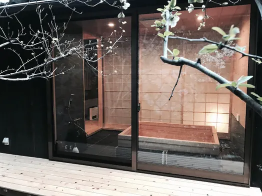 Artist's house in Kyoto with a big cypress bath