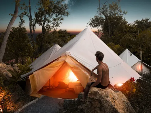 Experience luxury glamping in Rawai with an outdoor pool, restaurant, and bicycle rentals, just minutes from the beach.