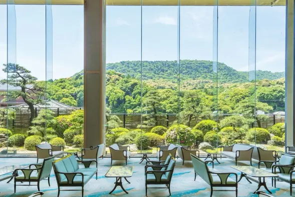 Relax in a hotel with hot springs, outdoor pool, sauna, and complimentary airport shuttle in Takamatsu.