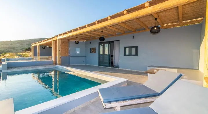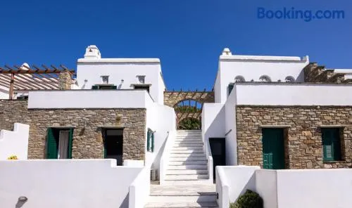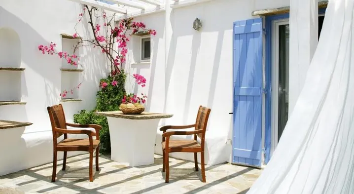 Luxury guesthouse with individually decorated rooms, terrace views, and bicycle rentals in Kardiani, Tinos.